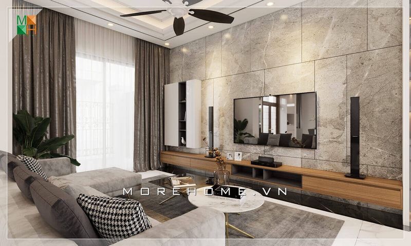 Thiết kế nội thất phòng khách nhà phố phong cách hiện đại, thoải mái và sang trọng