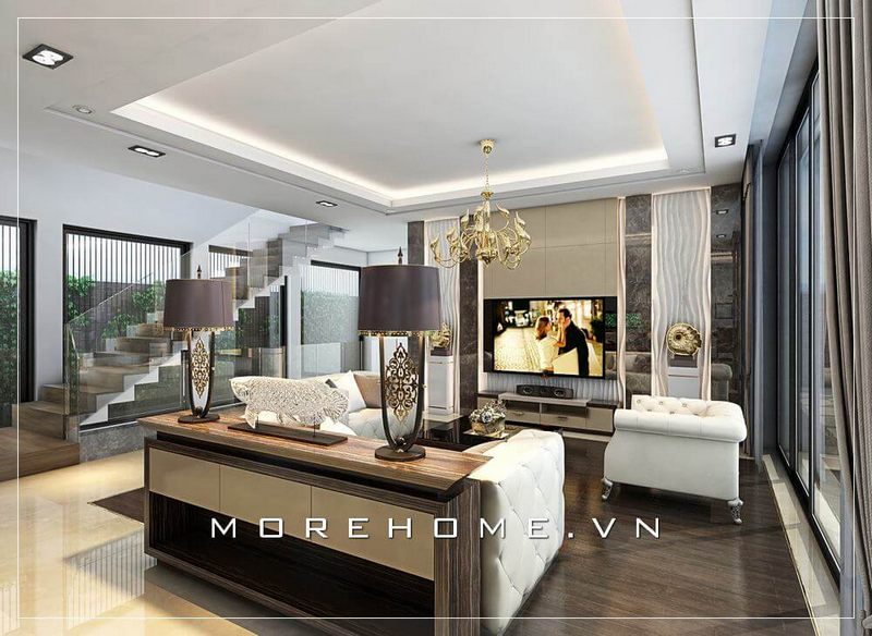Thiết kế nội thất phòng khách biệt thự phong cách tân cổ điển sang trọng và đẳng cấp