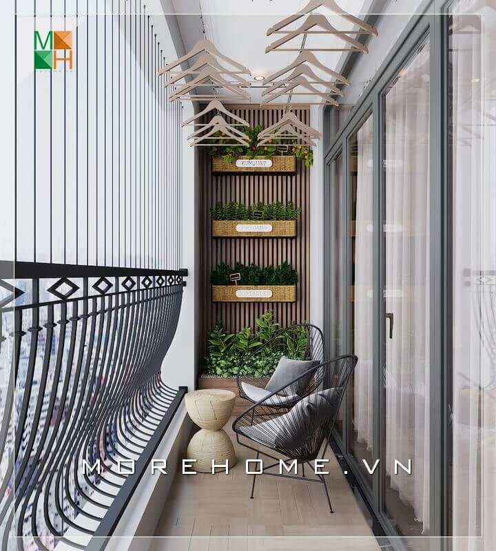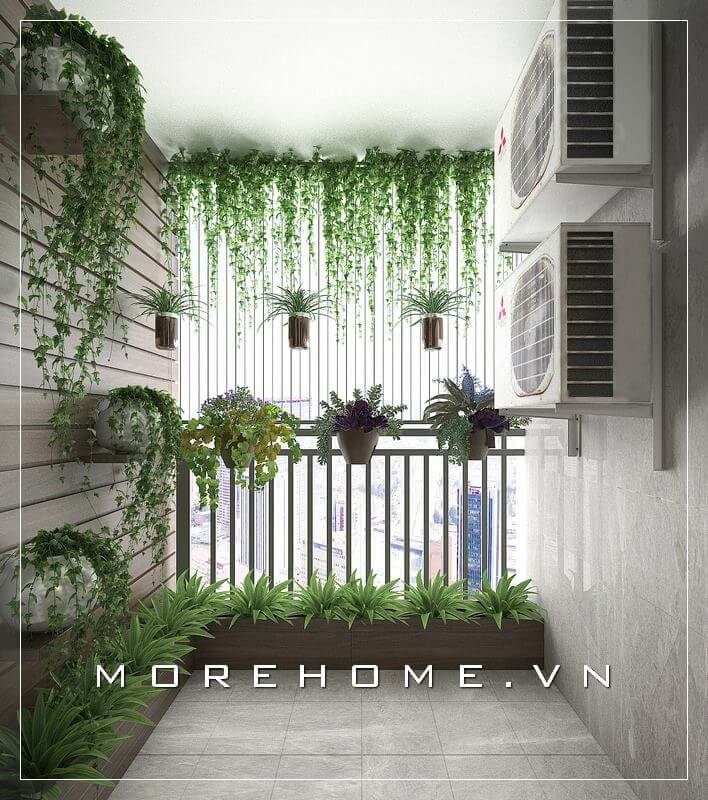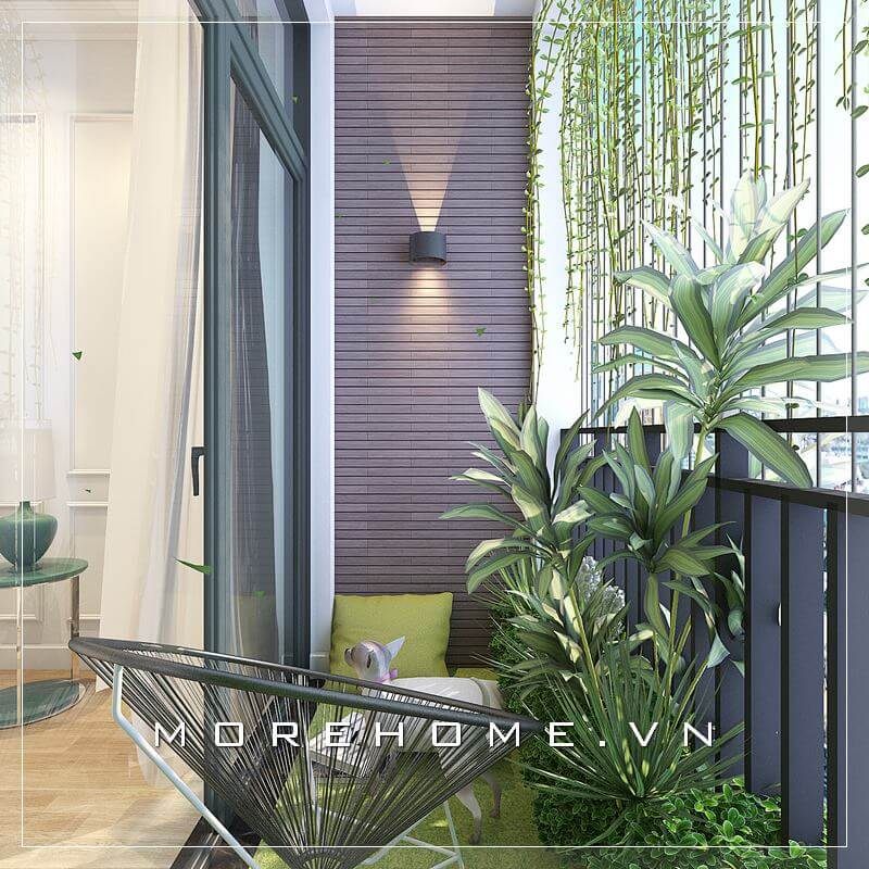 Mẫu thiết kế ban công phù hợp cho diện tích ban công nhỏ của chung cư hiện nay với sự kết hợp của dàn cây xanh mang thiên nhiên vào không gian sống gia chủ