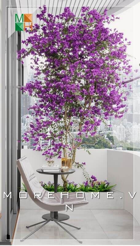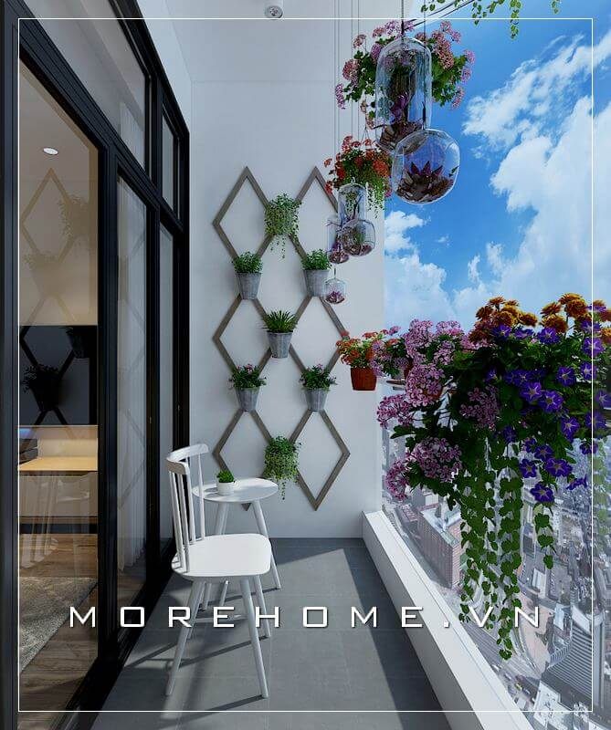 Mẫu thiết kế ban công ấn tượng kết hợp nhưng chậu hoa xinh xắn mang đến một không gian thư giãn tuyệt vời