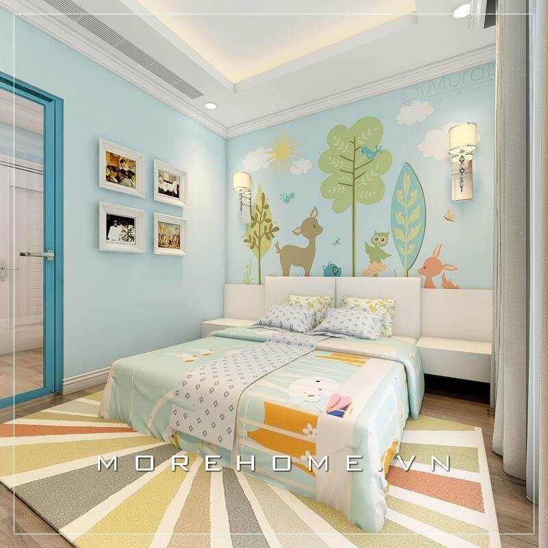 Việc thi công tranh dán tường trẻ em đẹp ngộ nghĩnh tại phòng ngủ con gái của chung cư Imperia Sky Garden Hà Nội đang được thực hiện.