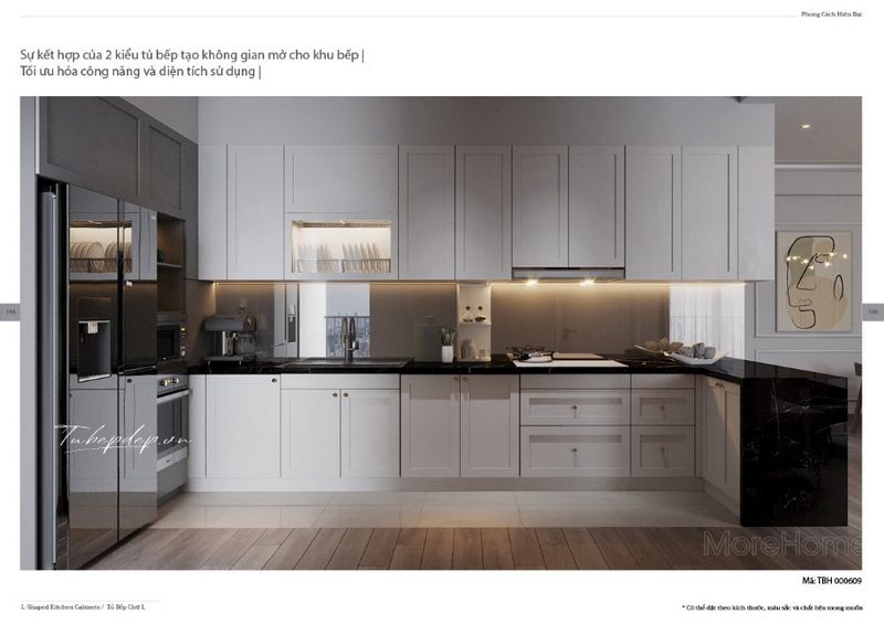 Morehome mang đến cho không gian sống của gia đình những mẫu tủ bếp đẹp và ấn tượng với phong cách thiết kế hiện đại, màu trắng.