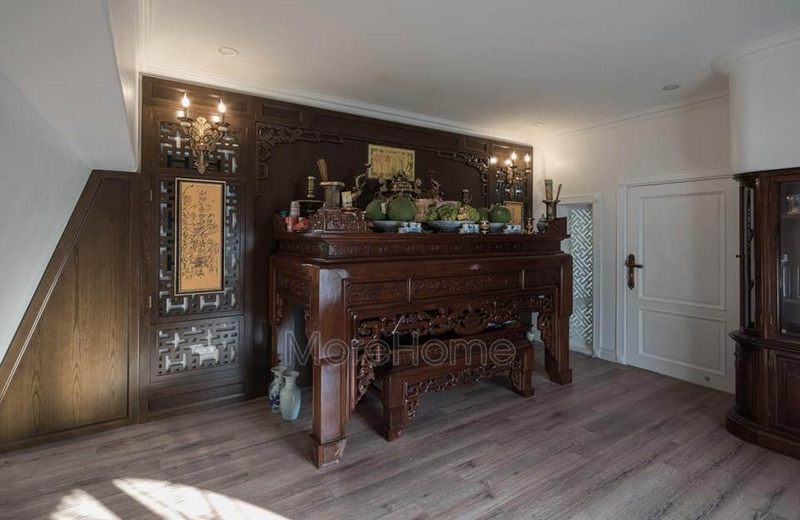 Tủ thờ được thi công phù hợp với không gian nhà, có tính năng sử dụng và độ đẹp cao.