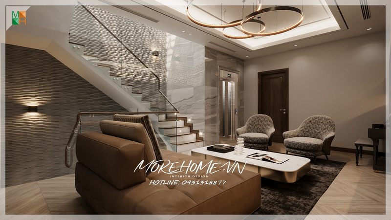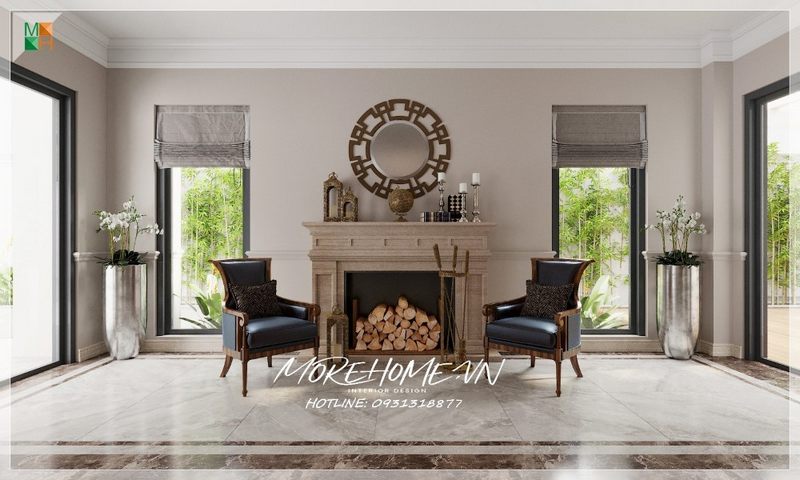 Thiết kế nội thất phòng khách biệt thự cổ điển cao cấp với phong cách sang trọng.