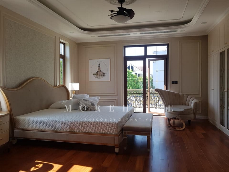 Bộ sofa tân cổ điển bọc da màu kem với kiểu dáng văng tiện lợi mang lại vẻ đẹp sang trọng, cao cấp khi bước vào phòng khách biệt thự của bạn, thu hút mọi ánh nhìn.